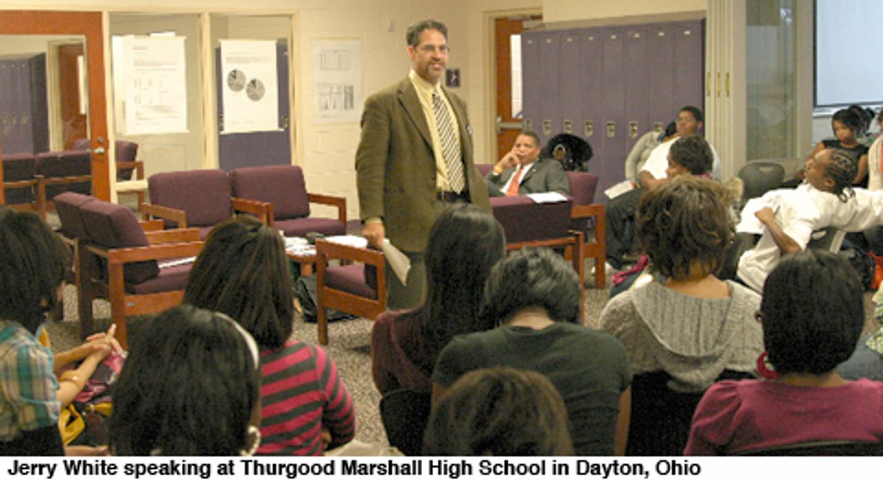 White asked the students if they had a problem with “sharing the wealth” in the US. Almost without exception the students said that was a good idea. In response to a student’s question about improving conditions in Dayton, White said the auto industry and financial institutions had to be put under the democratic control of working people and trillions poured into rebuilding the cities, stopping foreclosures and evictions, and guaranteeing decent-paying jobs and high quality education for all.