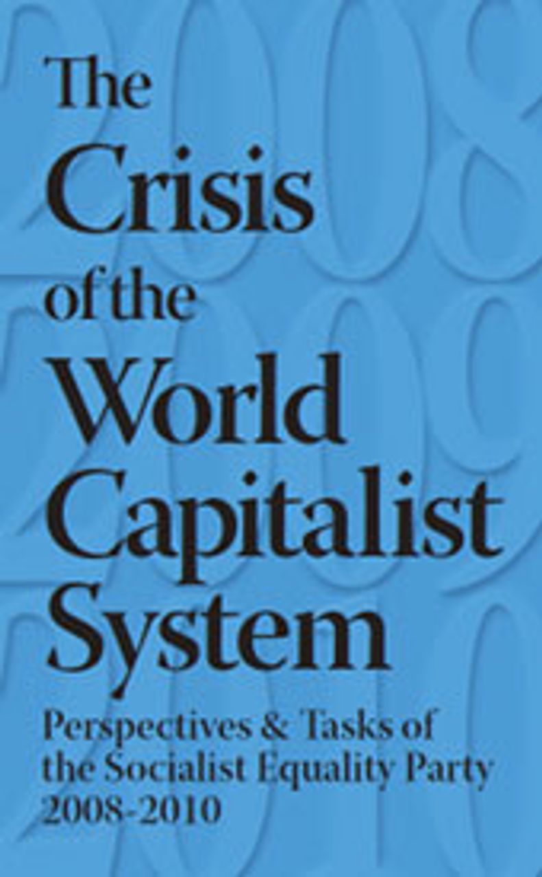 The Crisis of the World Capitalist System: Perspectives and Tasks of the Socialist Equality Party 2008-2010 can be ordered online by clicking here.