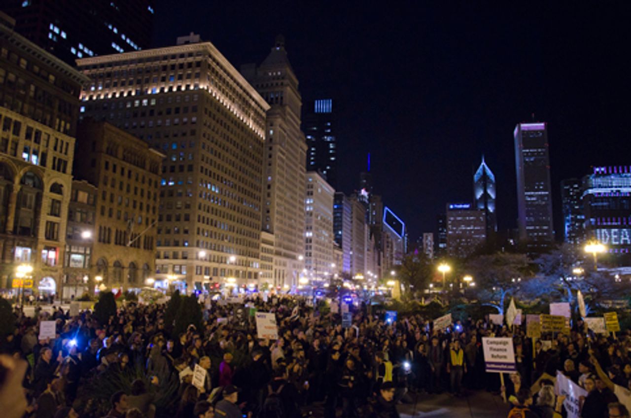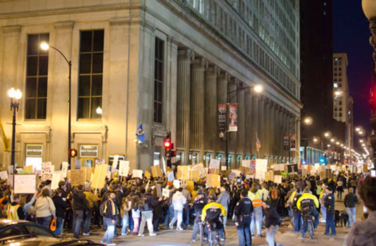 Occupy Chicago drew more than 2,000 supporters Saturday night as protesters joined in a global day of action spawned by the “Occupy” movement. This was the largest mobilization to date in Chicago after more than three weeks of protests.
