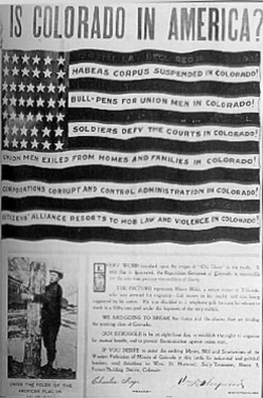The falsity of the claim that there is no history of class struggle in the United States is demonstrated by events like the Colorado miners’ strike. However, while in American history one finds no shortage of workers’ fighting against their bosses in the streets, their struggle to emancipate themselves politically lags far behind. In the strike of 1913-1914, workers faced not just the most powerful capitalist in the nation in John D. Rockefeller, Jr., but the violence of the state mobilized by Democratic Party Governor Elias Ammons.
