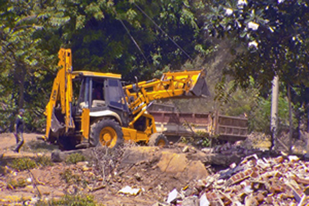 ඉවත්ව ගිය අයගේ ගෙවල් බැකෝ යන්ත්‍ර යොදාගෙන කඩා ඉවත් කරන අයුරු