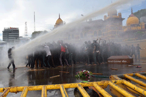 කඳුලු ගෑස් සහ ජල ප‍්‍රහාර එල්ල කරමින් පොලිස් ප‍්‍රහාරය ආරම්භවිය /ඡායාරූප අනුග්‍රහය: ෂෙහාන් ගුනසේකර