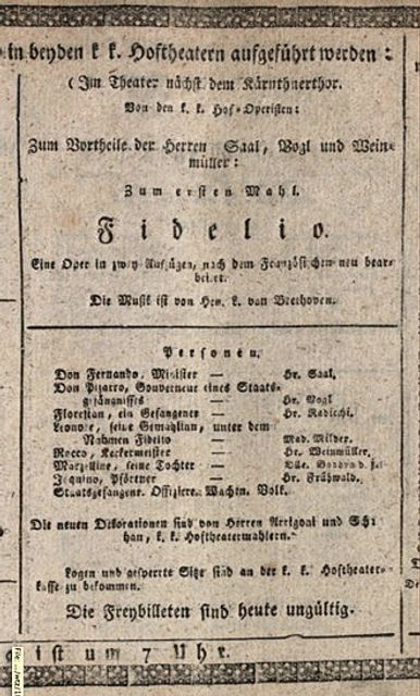 1814 මැයි, වියානාවේ දී රංගාවතීර්න කල ෆිඩීලියෝ ඔපෙරාවේ විස්තර පත‍්‍රිකාව.