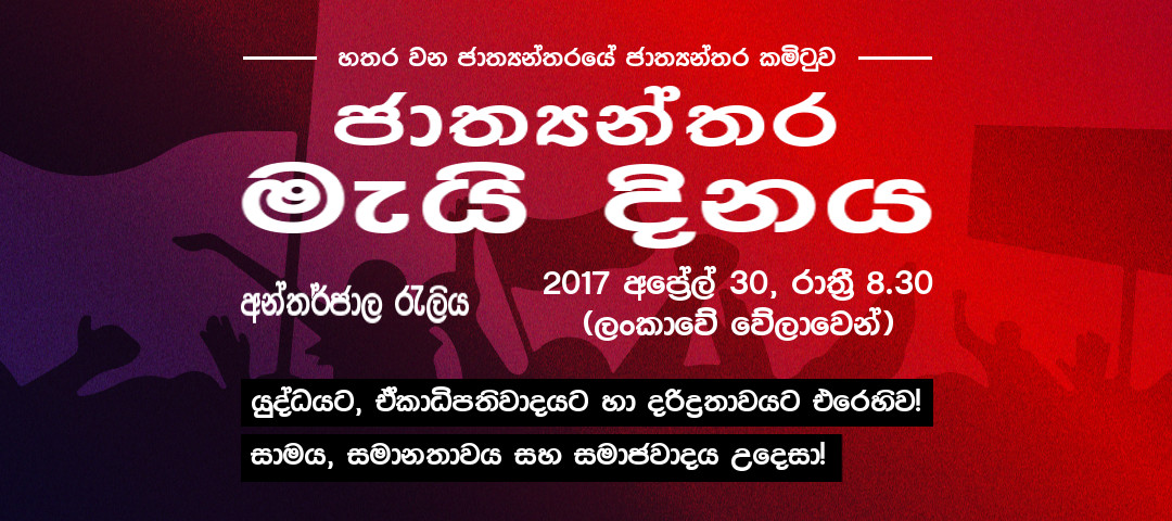 හතර වන ජාත්‍යන්තරයේ ජාත්‍යන්තර කමිටුව, ජාත්‍යන්තර කම්කරු පන්ති සහයෝගිතාවයේ ඓතිහාසික දිනය වන, මැයි දිනය සමරනු පිනිස, අප්‍රේල් 30 වන ඉරිදා, ජාත්‍යන්තර අන්තර්ජාල රැලියක් පවත්වනු ඇත. මෙම රැලිය එදින ශ්‍රී ලංකාවේ වේලාවෙන් රාත්‍රී 8.30ට wsws.org/mayday සබැඳිය හරහා විකාශනය කෙරෙනු ඇත.