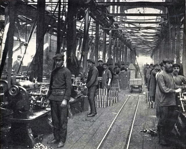 ලෝහ කම්කරුවෝ පෙට්‍රොග‍්‍රෑඩ් කම්කරු පන්තිය තුල ප‍්‍රමුඛස්ථානය ගෙන සිටියෝය. ඔවුන් ක්‍රියා කරවූ යන්ත‍්‍ර එසමයෙහි පෙනී ගියේ විද්‍යා ප‍්‍රබන්ධයක එන යන්ත‍්‍ර සේය: “නවතම වර්ගයේ විදුම් යන්ත‍්‍ර, ටරට් ලියවනපට්ටල්, සිරස් බෝර්කිරීමේ යන්ත‍්‍ර, ස්වයං-ක්‍රියාකාරී මට්ටම් ගෑමේ යන්ත‍්‍ර, සහ තිරස් ඇලි කැපුම් (මිලිං) යන්ත‍්‍ර.” 7