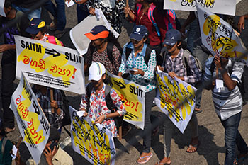 ශ්‍රී ජයවර්ධනපුර විශ්ව විද්‍යාලයේ සිට කොල්ලුපිටිය මංසන්ධිය දක්වා වූ පා ගමනේදී, සයිටම් පුද්ගලික වෛද්‍ය විද්‍යාලය ස්ලිට් ආයතනය යටතේ වෙනත් නමකින් ආරම්භ කිරීමට, රාජ්‍ය මර්දනයට, පාසල් පෙල පොත් සහ නිල ඇඳුම් කප්පාදුවට, “සුරක්ෂා සිසු රක්ෂනයට” හා ”අධ්‍යාපනය විකිනීමට” එරෙහිව ඔවුහු සටන් පාඨ හඬ නැගූහ.