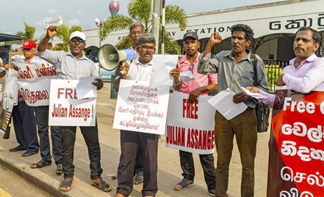 අසාන්ජ් ආරක්ෂා කිරීම සඳහා අප්‍රේල් මාසයේ ශ්‍රී ලංකාවේ පැවති සසප රැලියක්