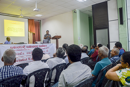 “ජුලියන් අසාන්ජ් හා චෙල්සි මෑනින් පිලිබඳව සමස්ත මාධ්‍ය සංස්ථාපිතයම බරපතල නිහැඬියාවක් පවත්වාගෙන යන තත්වයක් තුල මෙම නිහැඬියාව බිඳීමේ අවශ්‍යතාවය” පෙන්වා දෙමින් රැස්වීමේ ප්‍රධාන දේශනය පැවැත් වූ සසප දේශපාලන කමිටු සාමාජික පානි විජේසිරිවර්ධන සිය කතාවට ප්‍රවිෂ්ට විය. “විකිලීක්ස් යනු මහජන බුද්ධි අංශයක්” යැයි ජුලියන් අසාන්ජ් විසින් කරන ලද ප්‍රකාශය උපුටා දක්වමින් වර්තමාන කම්කරු පන්තියේ අරගලයට මේ දෙදෙනා නිදහස් කර ගැනීම සඳහා ගෙන යන සටනේ අදාලත්වය, විවිධ රටවල මාධ්‍ය මර්දනය පිලිබඳ නිදසුන් දක්වමින් ඔහු පෙන්වා දුන්නේ ය.