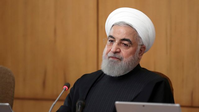 ඉරාන ජනාධිපති කාර්යාලයේ නිල වෙබ් අඩවිය විසින් නිකුත් කරන ලද මෙම ඡායාරූපයෙහි ජනාධිපති හසාන් රූහානී 2020 ජනවාරි 15 වන බදාදා ඉරානයේ ටෙහෙරානයේ පැවති කැබිනට් රැස්වීමකදී කථා කරයි. ( ඒපී මගින් ඉරාන ජනාධිපති කාර්යාලය)