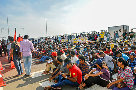 මහපොල සහ ශිෂ්‍යාධාර රුපියල් 10,000 දක්වා ඉහල දැමීම සහ මාස තුනකින් ප්‍රමාද කෙරී ඇති එම ගෙවීම් වහා පියවීම යන ප්‍රධාන ඉල්ලිම් යටතේ විශ්වවිද්‍යාල සිසුන් 1500කට ආසන්න පිරිසක් පසු ගිය බ්‍රහස්පතින්දා ජනාධිපති ලේකම් කාර්යාලය ඉදිරිපිට විරෝධතා දැක්වූහ. ලංකාවේ සෑම විශ්වවිද්‍යාලයක්ම පාහේ නියෝජනය කල සිසුන් කොලඹ පිහිටි සෞන්දර්ය කලා විශ්වවිද්‍යාලය වෙත පැමිනි අතර ඔවුහු පසුව පාගමනකින් ගාලු‍මුවදොර පිහිටි ජනාධිපති ලේකම් කාර්යාලය දක්වා පැමින ඒ ඉදිරිපිට විරෝධතා පුවරු ප්‍රදර්ශනය කරමින් සහ සටන්පාඨ හඬනගමින් උද්ඝෝනයේ යෙදුනාහ.