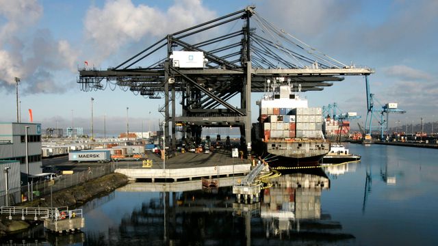 හොරයිසන් ලයින්ස් ඉන්කෝපරේෂන් හි බහාලුම් නෞකාවක් 2008 පෙබරවාරි 13 වන බදාදා ටකෝමා වොෂ් හි (ටකෝමා, වොෂිංටන්හි) දී මුදා හරිනු ලැබේ.( ස්තුතිය: ටෙඩ් එස්. වොරන් /AP Photo/Ted S. Warren)